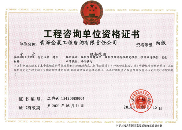 青海金晟工程咨詢有限責(zé)任公司成立于2006年1月,是國家發(fā)改委審核認(rèn)定,并取得《工程咨詢資格證書》的專業(yè)咨詢單位。公司具有獨立法人資格,主要從事礦山企業(yè)規(guī)劃咨詢、工程項目規(guī)劃、設(shè)計及招投標(biāo)咨詢、建設(shè)項目評估咨詢、工程項目管理、工程項目建議書、可行性研究報告、項目申請報告、資金申請報告及礦山開發(fā)利用方案的編撰等服務(wù)。